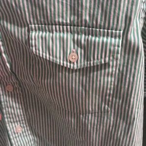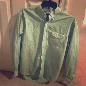 A great green and white stripped button with a chest pocket! Lightly worn, no fading or stains whatsoever.