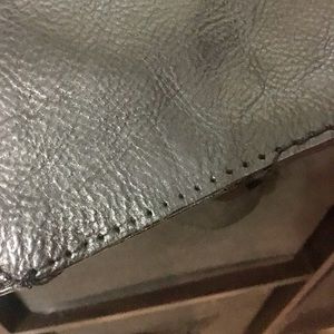 Black, studded, leather hobo bag. Gorgeous and understated. Leather has a great feel. Has both chain and leather straps. Great condition except for one small area where the stressing is coming loose.