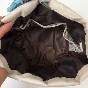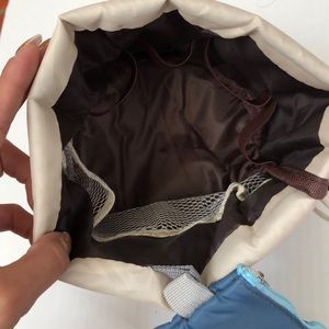 They come included with a small matching pouch that may hold your jewelry or small items, a clear pouch to hold makeup brushes, the inside contains 3 net compartments to hold items and 4 elastic band holders to place items.