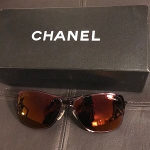 Chanel 2017 Pilot Summer mirrored aviator sunglasses. Purchased recently and worn only a few times it is in excellent new like condition with no visible scratches on lens. Beautiful Aubergine purple color frame with shades of mirrored purple on lens. Interlocking CC at temples. Includes box and case.