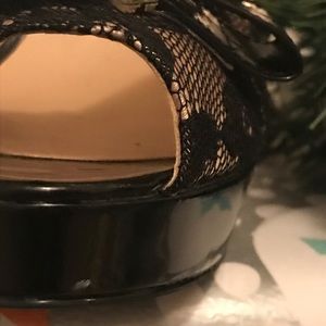 Woman’s Guess lace peep toe high heels.