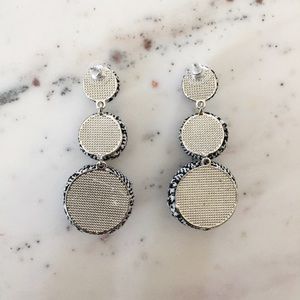 Lightweight & 60s inspired, the "Lizzie" bon bon triple ball drop earrings are ideal for weddings, prom, or a holiday soirée! With their dangling spheres, these retro oversized statement earrings are both bold & dainty. Black & white cotton houndstooth fabric covers three circles of increasing size. The metal is silver colored zinc alloy. They are stud earrings with push backs. New with protective packaging. Available in additional colors in separate listings.