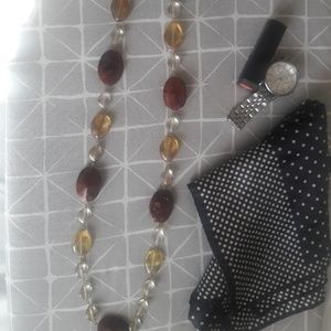 Long Clear and Earth tone beaded necklace