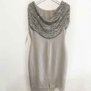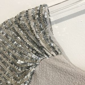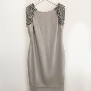 ✨sold✨ badgley mischka • gray silver beaded dress