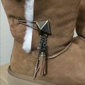 Brand new and Authentic!! Size 9 shines with a pyramid button closure with tassel details. from our signature Twinface, this fashionable and functional boot cushions feet and grips exceptionally well on both wet and dry surfaces with its Treadlite by UGG sole.