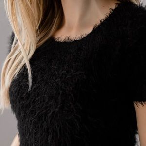 Fun party dress in a fuzzy shaggy material π Material is plush, soft and stretchy, nonsheer. Style with tall boots and you're ready for a fun night out! High designer quality and well made piece.
