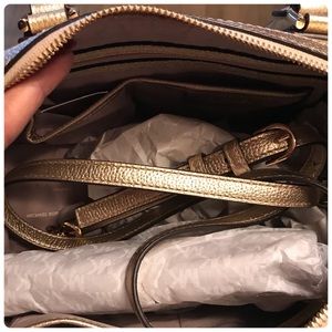 Brand new! Never used. This beautiful beauty is absolutely stunning! Actually this bag is more beautiful in person! Interior features 1 zip pocket, 4 slip pockets and 1 key finder. Exterior features logo, 2 side magnetic, snap pockets and lock charm. Gold-tone hardware. Bag converts from crossbody to tote by removing strap. Pebble leather. Purchased @ Macy’s for full price. Dust bag included. I video all my items before shipping. NOTE✅ ACCEPTING REASONABLE OFFER! PLEASE DON’T LOWBALL ME!
