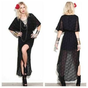 Authentic For Love & Lemons South of the Border dress in black, size small. The dress is silk with embroidered crescents throughout. This dress is in excellent condition and has no defects. Retail price is $195.