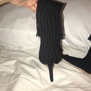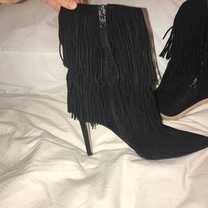 3.5 inch heels,black suede. Bought when living in a colder area and Moved to a warm year round state so it’s never cold enough to wear!! Super cute and the pointed toe is back in for 2019!!! High ankle booties lightly worn from inside walking