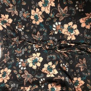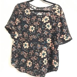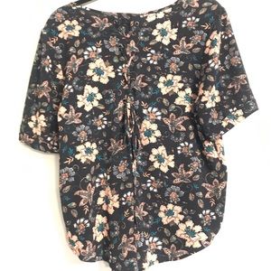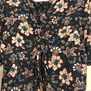 Gorgeous Navy Floral Top with fun and flattering lace up detail on the back. Cuffed sleeves. Light stretch. 97% polyester 3% spandex. Size Large. Brand: Sweet Rain
