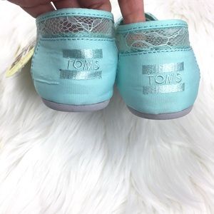 Mint green (looks Tiffany blue) classic Lace Toms. Brand new with tags (no box). Size 7. If you are looking for a girly girl, yet casual shoe, this is it!