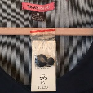 Max Rave lightweight fitted jacket. Navy blue, double breasted with scallop ruffle detail. Buttons down the cuff area of sleeves, see pictures. New with tags , never worn. Comes with extra buttons