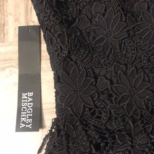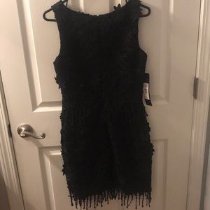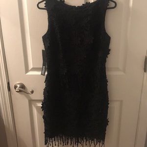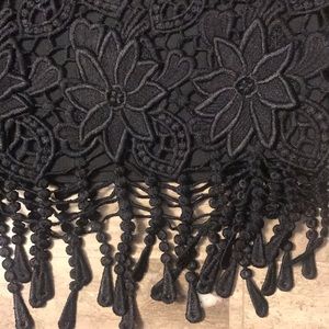 Appliqué lace floral black dress.