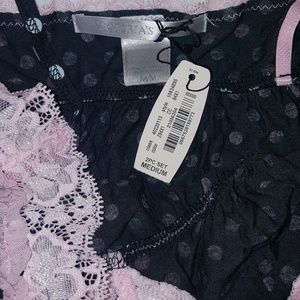 New with tags. Comes with matching panties. Stretchy soft material with lace accented top. Adjustable straps.