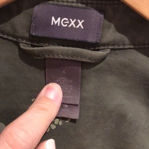 Great shape just sitting in my closet olive green color please be aware that the fringes or lose strands you can see in the picture that’s the way the jacket is made