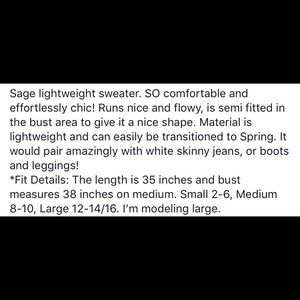 So pretty! Sizes S-L available relaxed flowy fit. 96% polyester, 4% spandex. Made in USA. Size down recommended