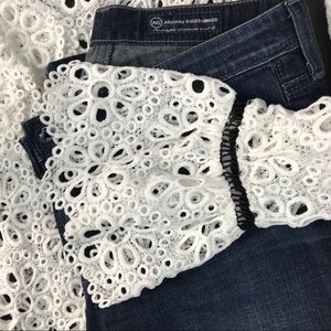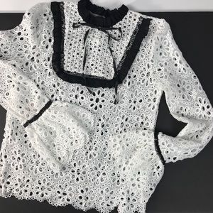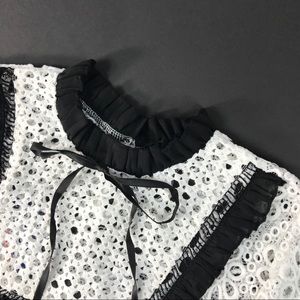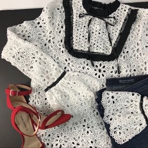 White Eyelet Blouse Ruffle Black Lace Boho Top