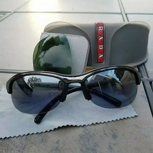 Authentic Prada sunglasses with an extra pair of lenses. Comes with case and cleaning wipe. Lots of life left! Slight sign of wear on nose peice