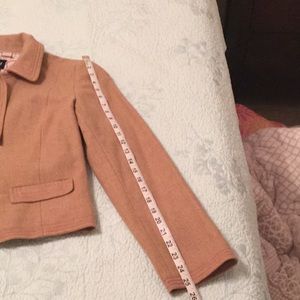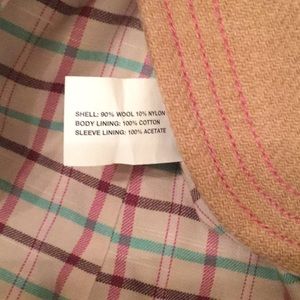 Light Brown wool blazer with pink stitching. Size 10. With a cute plaid lining. Worn only a handful of times. Also selling the skirt that goes with the jacket.