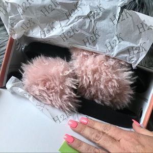 NWB π BLUSH SHEARLING SLIDES | VEGAN