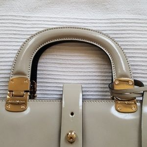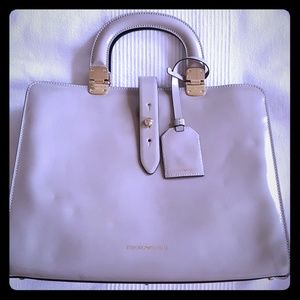 A brand-new..never used .Unworn unused ..Double handles medium size..compartment strap closer your contents secure. Interior zip pocket and two open pocket ..and large zip pocket.