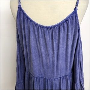 Be gorgeous, carefree & comfy in this stunning purple mineral wash tunic dress. This bohemian beauty has a relaxed fit & is full of lace details with 3/4 cold shoulder bell sleeves (adjustable spaghetti straps). Wear alone as a dress/coverup or pair with shorts/leggings/capris/denim as a tunic top. 65% cotton/35% polyester - Model 5’7 wearing a small.