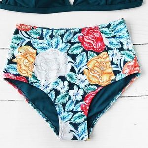 ⚡️🇺🇸🆕➕Blue triangle top high waist floral set