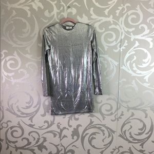 Rockin' and mockin' the night away. The Sound Dress by Cheap Monday comes in silver and features a metallic finish throughout, mock neck, mini shift dress silhouette, long sleeves, and cut-out detailing at shoulders. Polyester. Runs true to size. Color: metallic