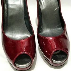 Stuart Weitzman Patent Leather Peep-Toe Burgundy