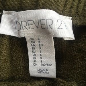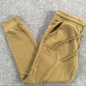 This comfy dark green pair of pants is in excellent condition; size S; 60% cotton, 40% polyester; side pockets.