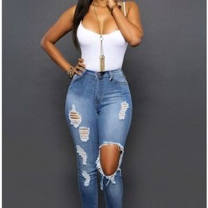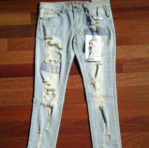 NWT Women's light wash stretch distressed jeans. Size: 7-8. This style is super sexy with heels and ankle boots!!!