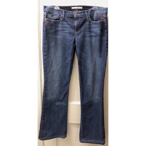 Pre-owned in a great condition. Size W 32. RN # 106214. Material includes: 98% Cotton 2% Elastane. Measurements by laying straight flat: Rise: 9” Inseam: 32” Waist: 18” please note this jeans have some stretch as well. Machine wash cold. Smoke free home. Any questions please let me know.