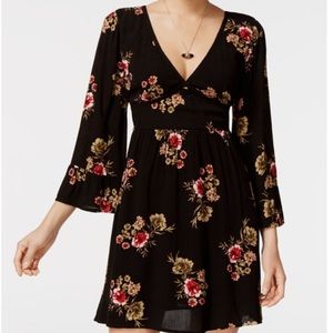 NWT Black Pink Red Floral Vneck Bell Sleeve Dress