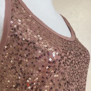J.Crew dusty rose colored tank with rose gold sequins on the front side only. Great for summer with some shorts and flip flops or dress it up with a blazer and some heels for a night out!