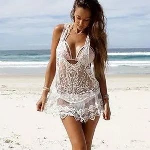 Sexy white lace crochet bikini cover-up.