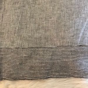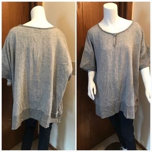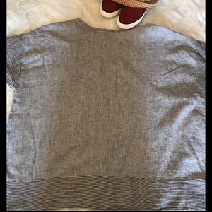 This is a soft cotton short sleeved tunic. Great summer piece with jeans or a skirt. Lightweight and breathable. Grey and black with bigger stripes surrounding the bottom of the tunic and the sleeves 💋💋