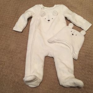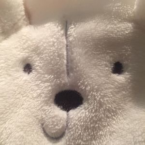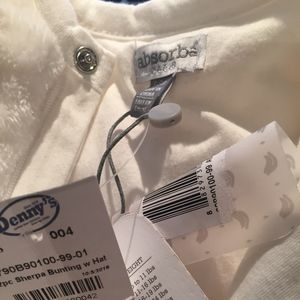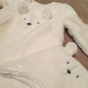 So So Soft! Adorable bunting is the perfect gift for a baby on the way! 6-9months. Cute & Cuddly hat with ears. Zips to the bottom with a snap on top. Still includes the hanger. The hat has minor indents from the hanger. C'est Magnifique!