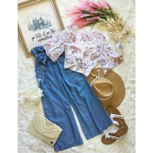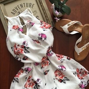 SOLD🚫NWOT Lush White Floral Surplice Romper