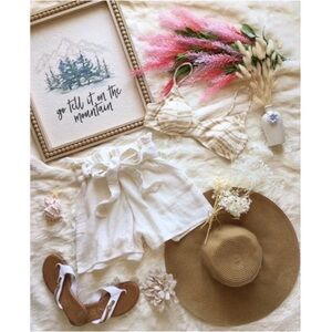 Welcome in the Summer & Fall in this stunning romper by Lush! It features a gorgeous surplice bodice w/ a keyhole detail. The cinched waist allows for the perfect fit, while the loose shorts provide comfort & cuteness. The pink & purple hued flowers make for a delicate elegance against the pure white background. Whether you are watching the golden Fall leaves turn in leather jacket & booties or strolling the warm pink sands of Summer in a floppy white sunhat, this romper is the perfect fit!