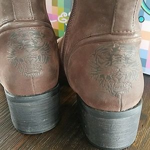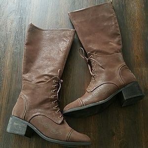 Worn just once or twice. Brown. Suede type feel. Upper PU lining PU sole is rubber. I no longer have the box for these as I had to use it to ship something else.