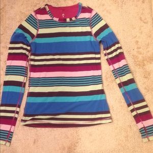 Iviva reversible workout long sleeve. Used good condition and very flattering. Size 12 but can be used by Xs/ S adult the solid more on winter or maroon color