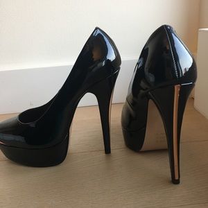 Carvela by Kurt Geiger Azure heels in EU size 36. These sleek stilettos have a raised platform and an roughly 5inch heel. The shoes have a rose gold trim at the front and on the back of the heel. These are unworn.