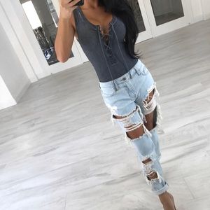 Acid wash color, adjustable lace up ties, moderate bottom & snap button enclosures.