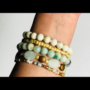 This stack of bracelets will be easily interchangeable with lots of different types of outfits and/or other bracelets. Sold as set.