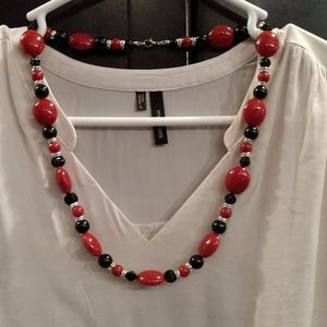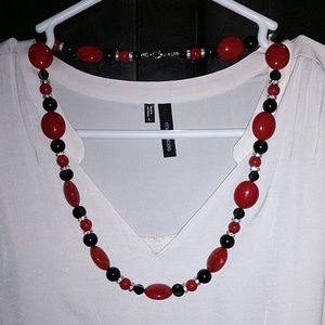 ❎SOLD❎ Handmade. Gorgeous beaded necklace. It is SO beautiful!! 💖 Red beads are a deep, slightly pinkish red. Total length 26".