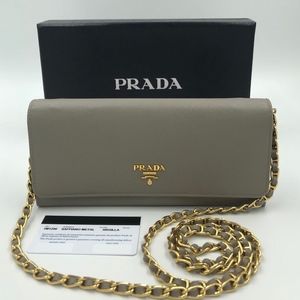❤️SOLD❤️ PRADA Saffiano Metal Chain Wallet Gray