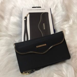 Compact, portable wristlet featuring Rebecca Minkoff iconic M.A.B detailing