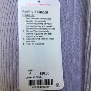 NWT SRNB LULULEMON FEELING BALANCED SWEATER 6 or 8