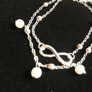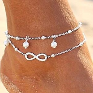 Fashion up your summer with an anklet. Comes in gold or silver. Inner layer infinity and outer layer triple pearl gives a look you must have.