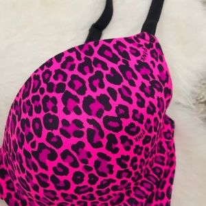 PINK Victoria's Secret Woman Bra Demi Soft Cup Animal Print Pink Black Sz 32B